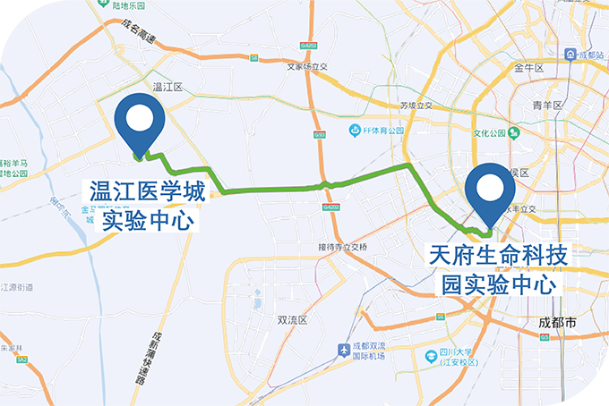 天府生命科技園與成都醫(yī)學城均建設有高標準開放式實驗中心,總計建筑面積約7000㎡。