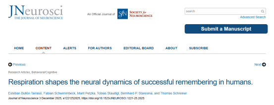 首先,我們呼吸是為了吸收氧氣——但這一重要節(jié)律可能還具有其他作用。近年來,多項(xiàng)研究發(fā)現(xiàn),呼吸與大腦活動(dòng)相關(guān),涉及信息處理和記憶功能。慕尼黑大學(xué)心理學(xué)系Emmy Noether青年研究小組負(fù)責(zé)人Thomas Schreiner博士帶領(lǐng)的研究團(tuán)隊(duì),聯(lián)合柏林馬克斯·普朗克人類發(fā)展研究所及牛津大學(xué)的同事,探究了呼吸對(duì)先前學(xué)習(xí)內(nèi)容回憶的影響,并記錄了這一過程中的大腦活動(dòng)變化。