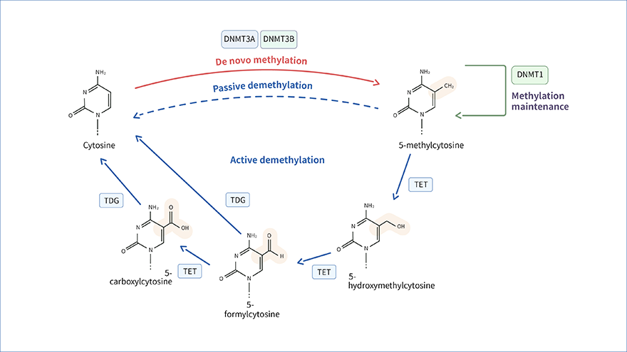 DNA甲基化通常抑制基因表達(dá),去甲基化則誘導(dǎo)了基因的重新活化和表達(dá)。這種DNA修飾方式在不改變基因序列前提下實(shí)現(xiàn)對(duì)基因表達(dá)的調(diào)控。